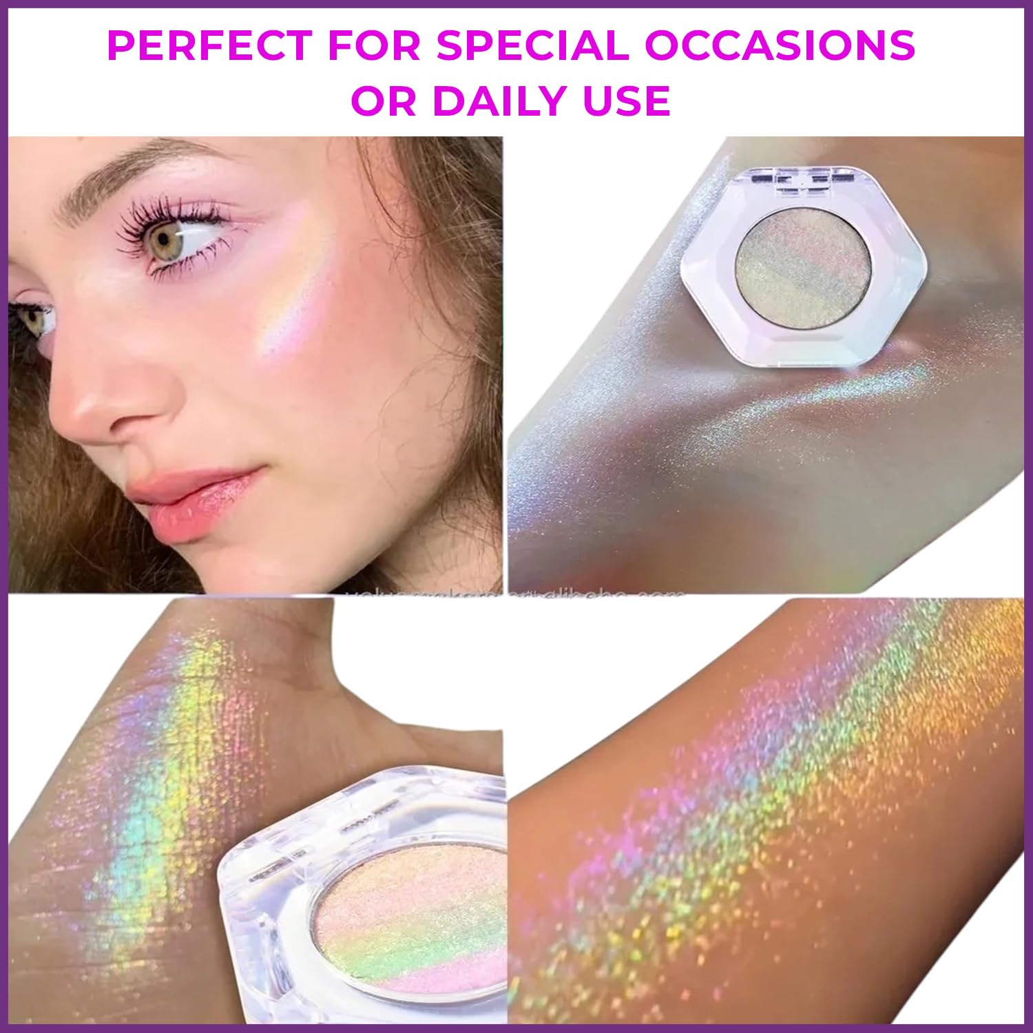Perfect for Special Occasions or Daily Use: Whether you’re preparing for a glamorous evening or simply want to brighten up your everyday look, this highlighter is the perfect product to add a magical touch to your routine.