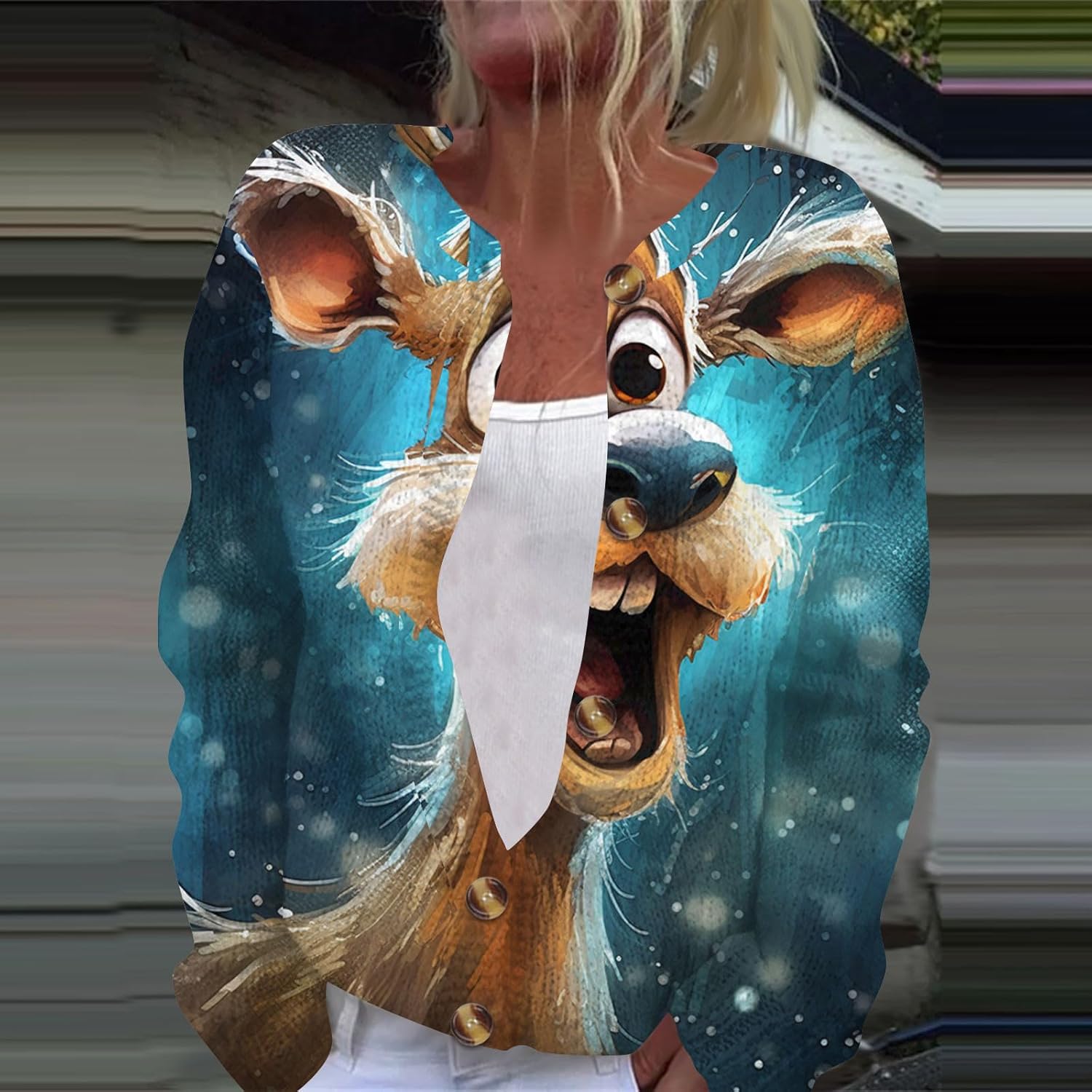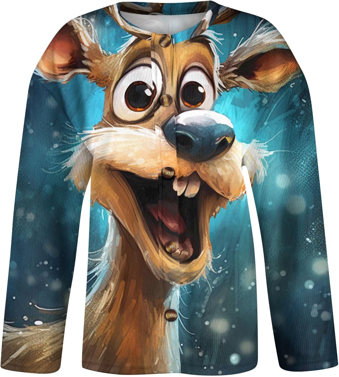 MGWTFZDL Ugly Christmas Sweater for Women Cute Xmas Open Front Button Down Sweater Cardigans Winter Knitted Outwear Coat