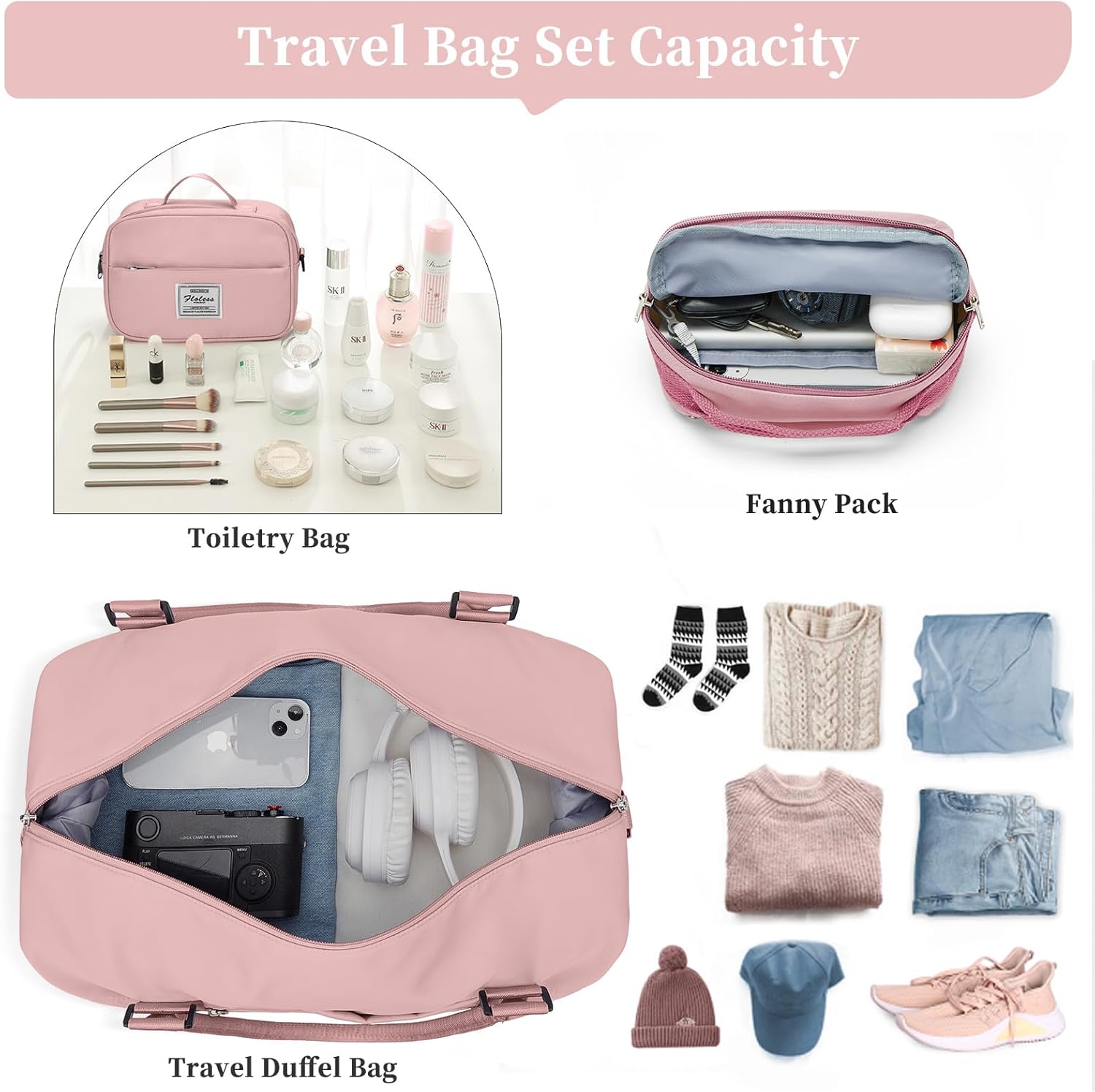 Weekender Bags for Women,Personal Item Travel Bag with Shoes Compartment,Overnight Travel Duffel Bag,Gym Bag,3 Pcs Set